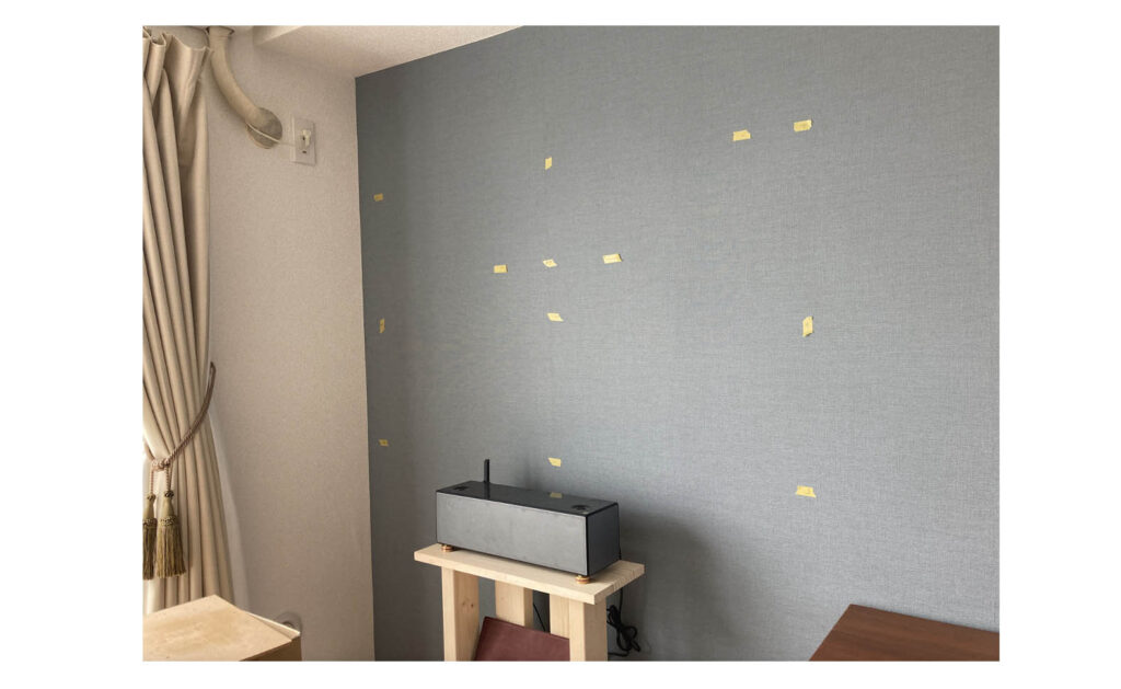 スクリーンとなる壁は、プロジェクターの光が鮮やかに拡散するよう、珪砂、白砂、漆喰を微妙なバランスで配合したものを採用。