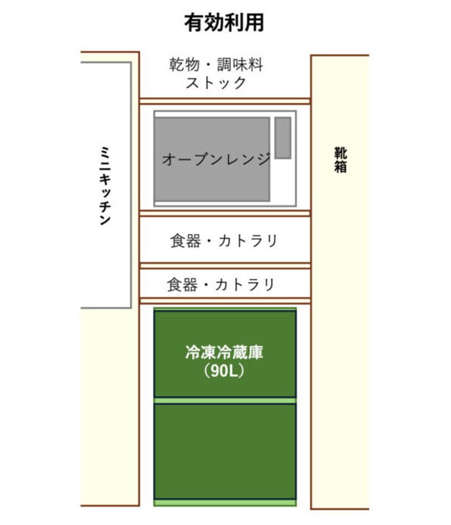 すると、1200mm程度のスペースをキッチンに使うことができます。