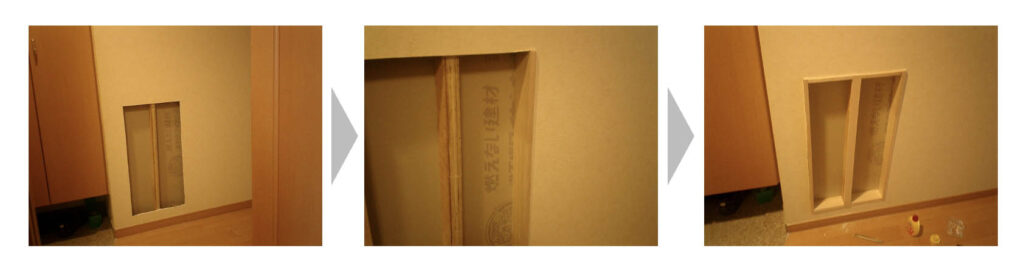 スリッパラックを設置したい場所の壁を切り開きます。