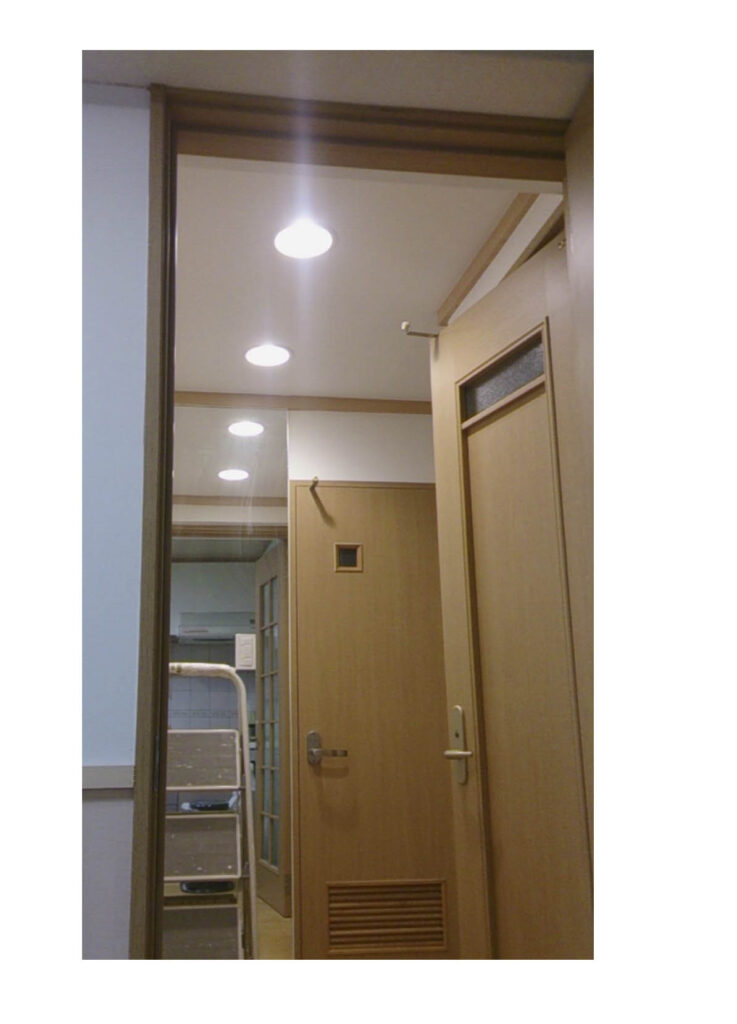 右の写真は当社施工の別物件ですが、2重天井の物件であればこのように最初からあったように設置することも可能です。