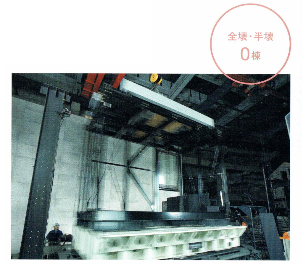 東日本大震災では177,458棟、熊本県下で10,246棟が被害地域に建設されていましたが、こちらも全半壊ゼロでした。(津波による被害は除きます。)