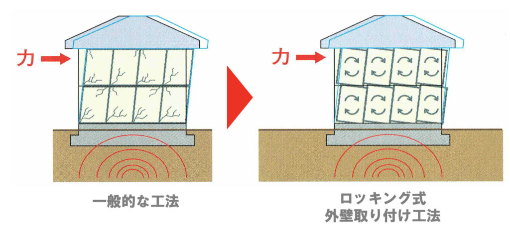 このようなリスクを軽減するため積水ハウスでは、外壁が揺れや歪みに追従する「ロッキング方式」を採用することで外壁のヒビ割れや脱落を防止ししています。