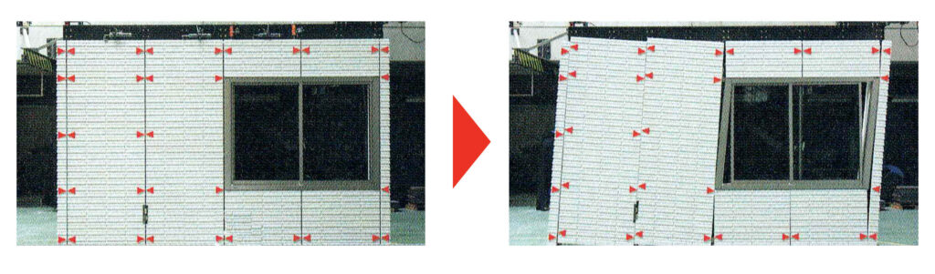 その効果は、地震時における住宅の変形量を1/2以下に抑えることで内外装の損傷を軽減させました。