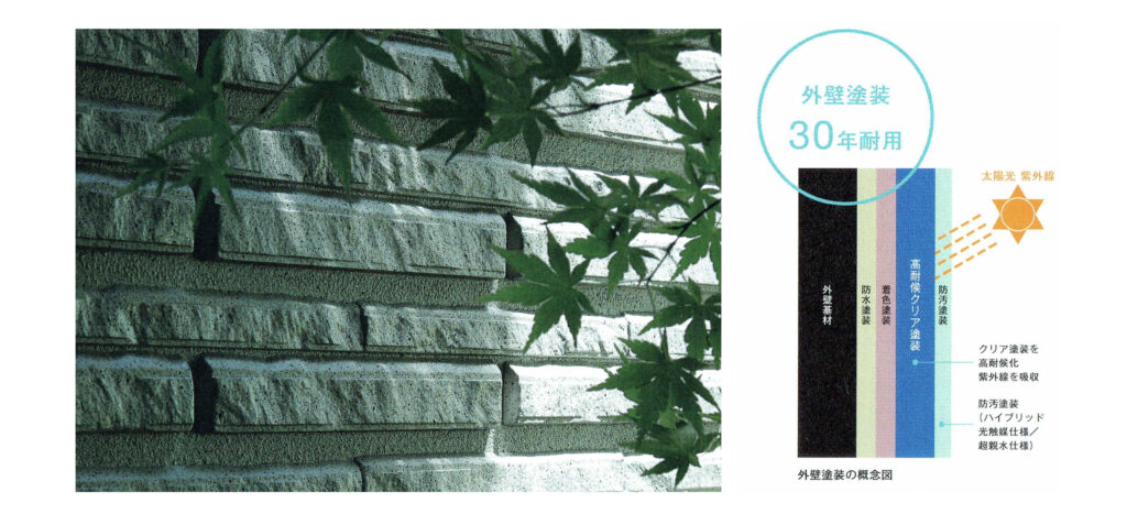 また目地は劣化が目立ちやすい部分であり、一般的には15年サイクルで交換するところを、積水ハウスは「高耐久目地」を採用することで30年間交換が不要に。
