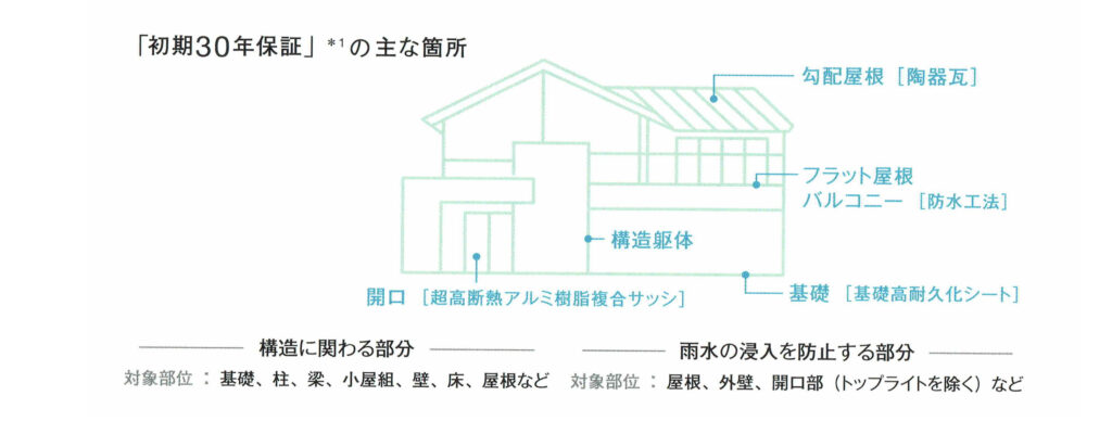積水ハウスは最初の10年・20年目・30年目で実施をお願いさせていただく無料の点検で、積水ハウスが必要と判断した補修工事を実施させていただくことで初期30年間、保証いたします。