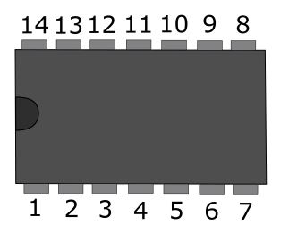 | サイズ(突起部含む) | DIP 2.54mmピッチ14ピンDIPパッケージ D19×W6.4×H5.3mm ※リード含まず SOIC 1.27mmピッチ14ピンSOICパッケージ D3.9×W8.65×H1.75mm |