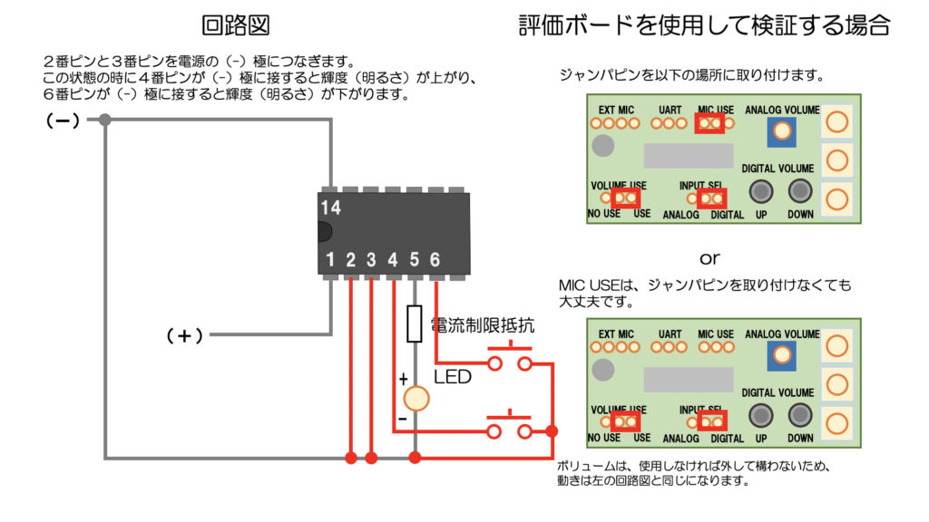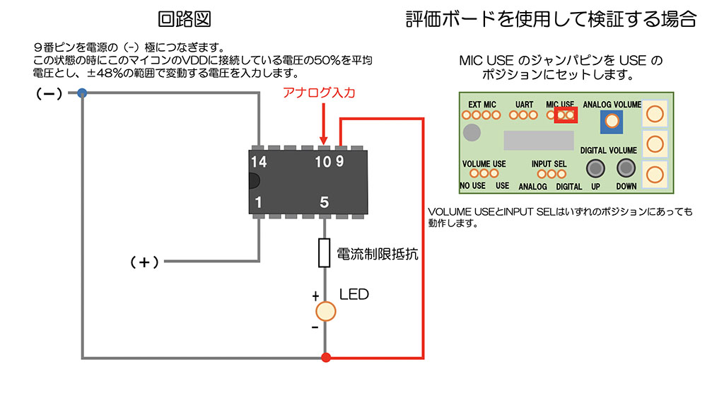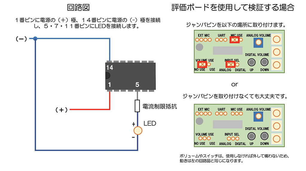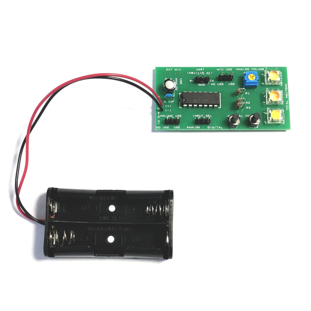 IC単体での性能評価に使用します。組み立て済みですので、乾電池をセットするだけで、すぐにお試しいただけます。