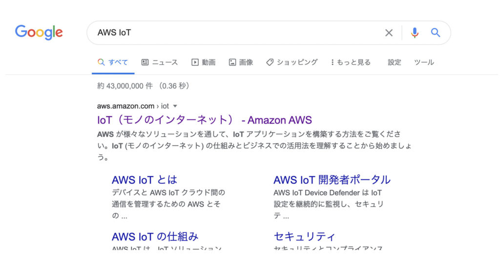 この場合、画面上部にあるテキストボックスにIoTと入力すると、関連サービスがリストアップされるので、そこからIoT Coreを選択してください。