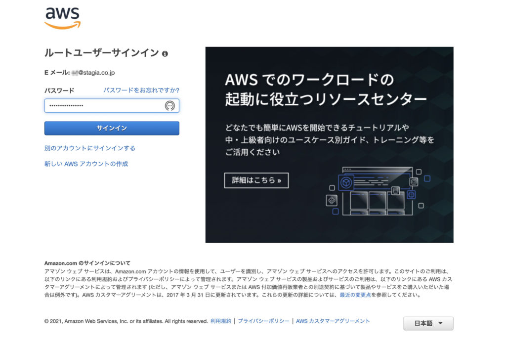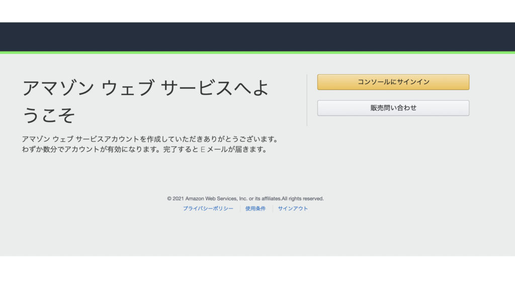 【コンソールにサインイン】をクリックすると、ログインできます。