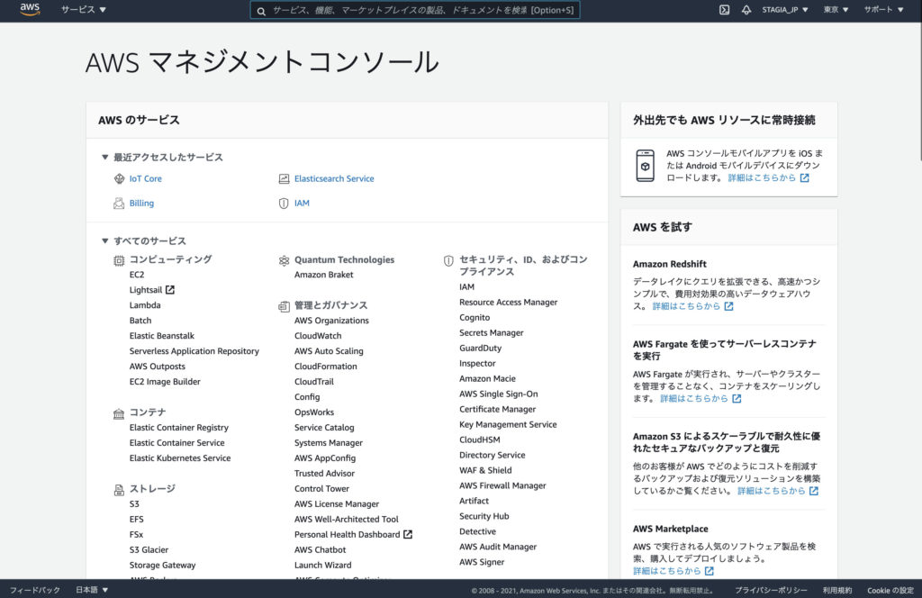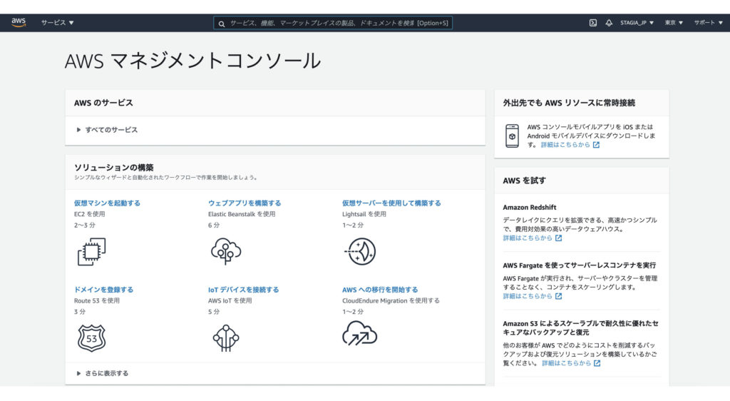(2)サインインすると、AWSマネジメントコンソールが表示されます。