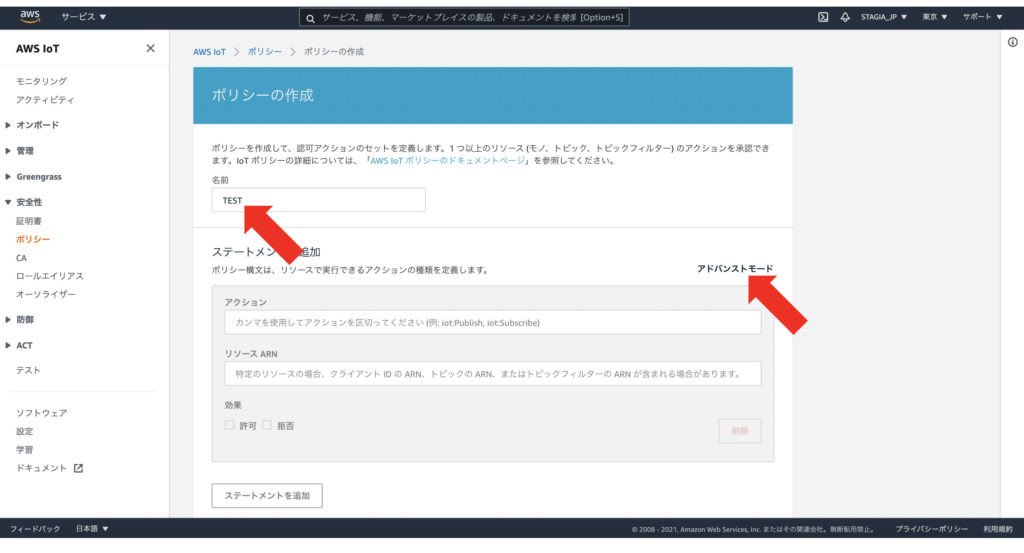 (6)ポリシーに名前を付けます。名前は何でもかまいません。