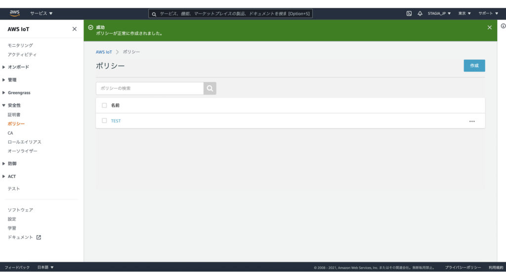 (8)画面上部に「成功 – ポリシーが正常に作成されました。」と表示されればポリシーは作成されています。