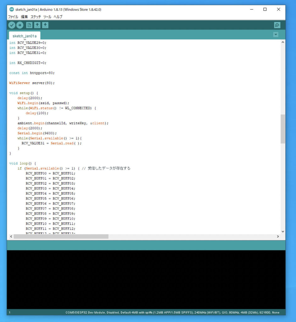 (8)こちらのプログラムをダウンロードしてArduino画面に貼り付けます。