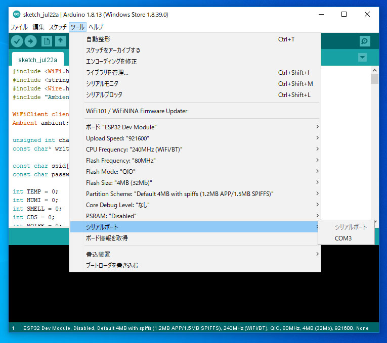 そのうち前半の10秒はWiFi接続処理を行うことを想定しておりますので、電源投入後10秒が経過してから時報(250)が送信されます。